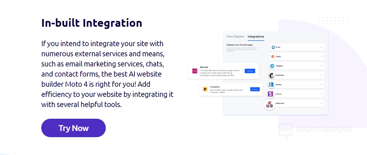 Сервис поддерживает интеграцию с множеством внешних служб и средств, таких как электронный маркетинг, чаты и контактные формы. Это повышает эффективность работы веб-сайта и расширяет его функциональные возможности.