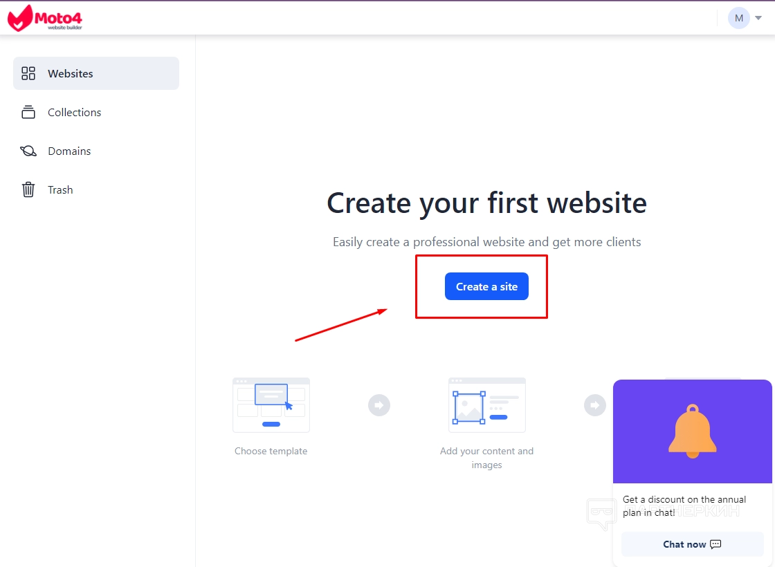 После этого появится кнопка «Создать сайт», после нажатия на которую откроется рабочее пространство с возможностью выбора наиболее подходящего шаблона.