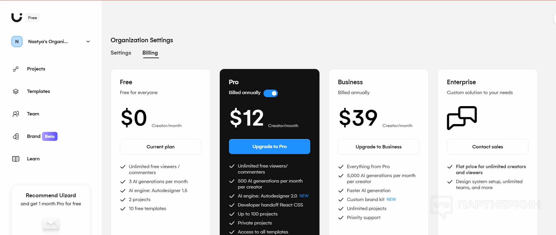 Тарифы Uizard