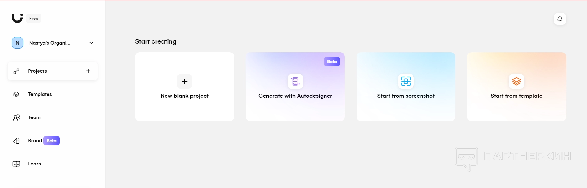 Личный кабинет и создание проектов