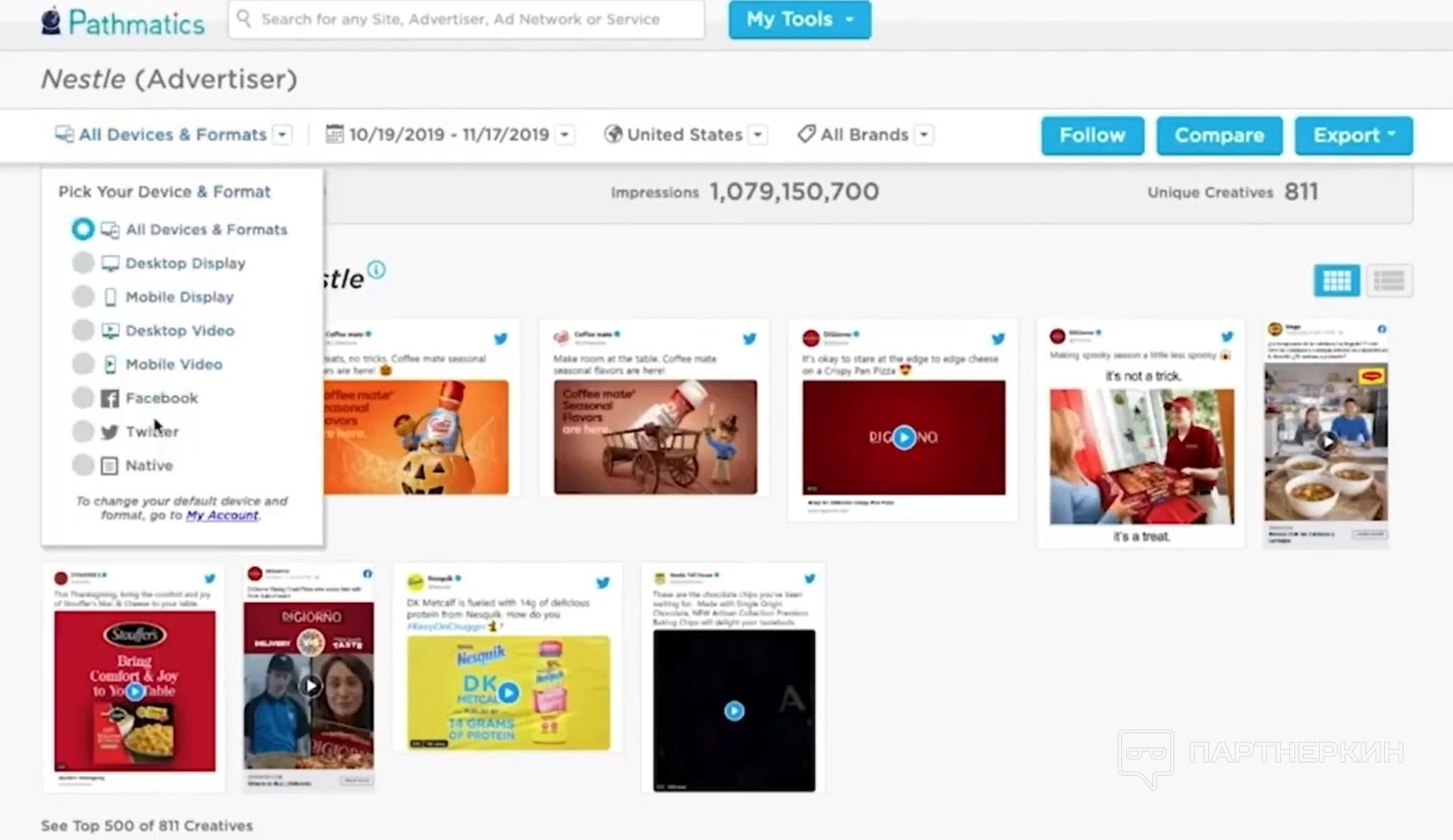 - Устройствах . Можно узнавать о расходах на рекламу и показы на десктопе, смартфонах, планшетах.