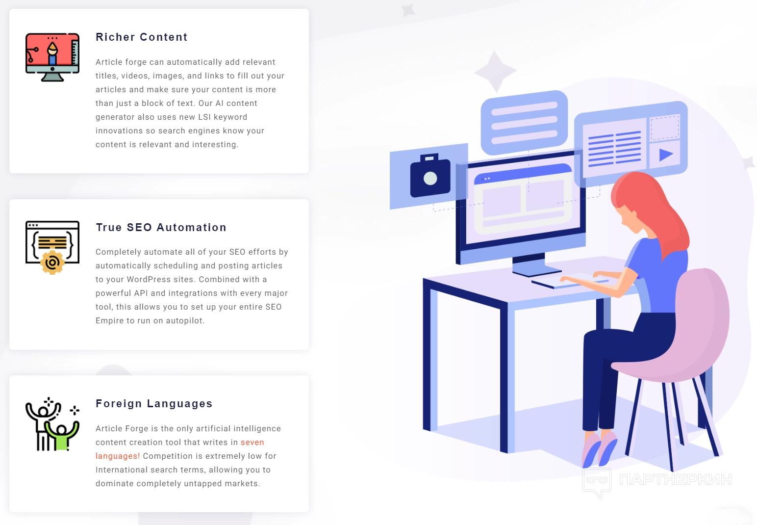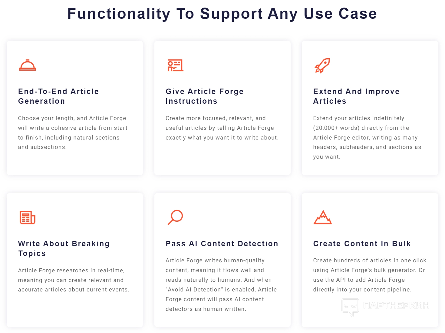 • Создание инструкций для Article Forge. Пользователи могут давать точные и полезные инструкции для создания более релевантного контента;