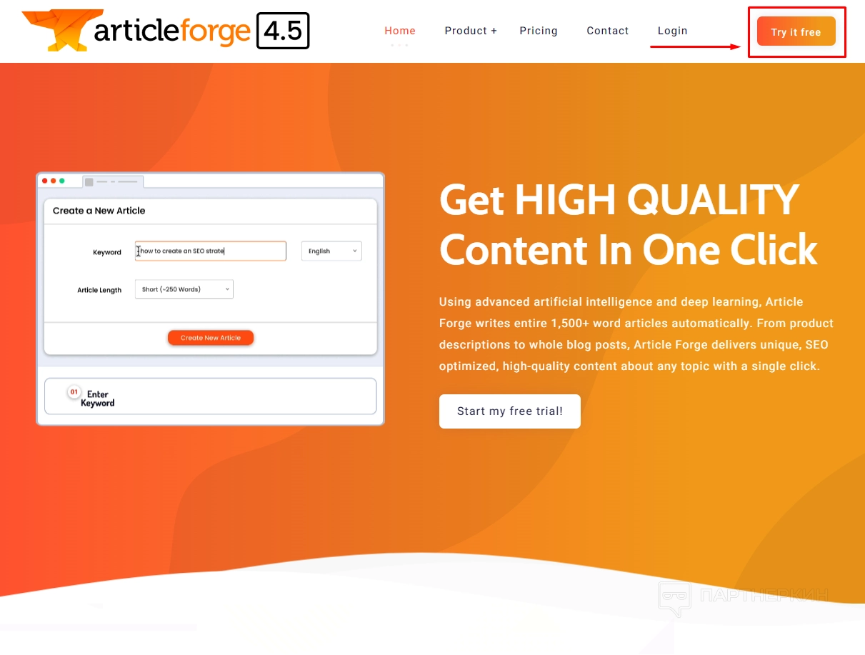 Для начала работы с сервисом необходимо пройти несложную процедуру регистрации на сайте, нажав на кнопку «Try it free» в верхнем правом углу сайта: