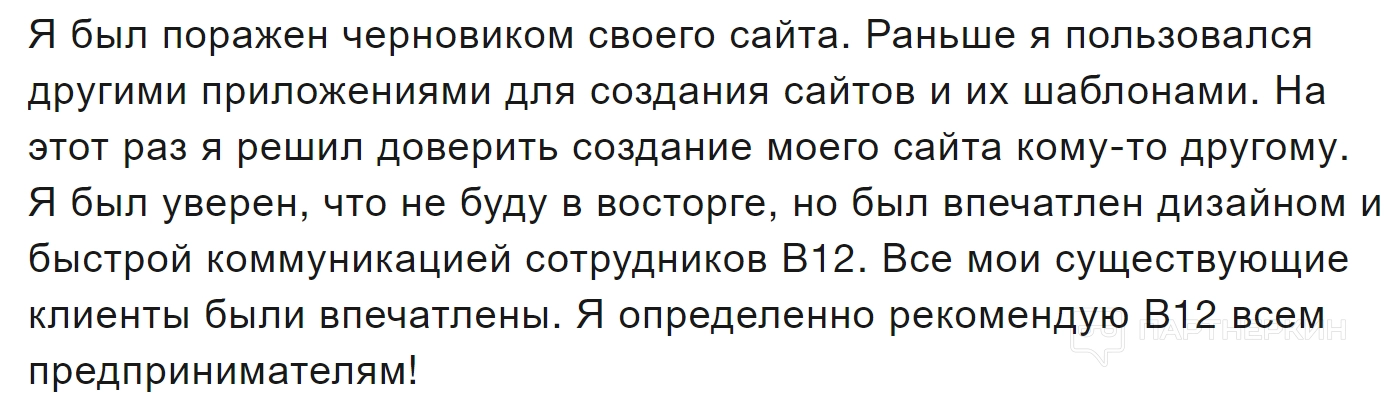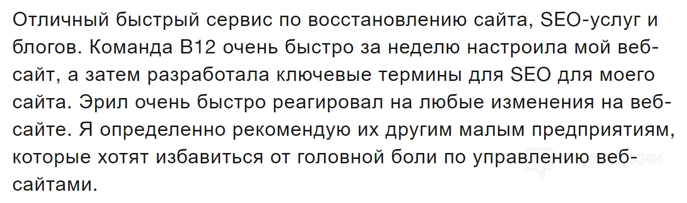 В дополнение к этому, клиенты также положительно оценивают функциональные возможности B12, которые помогают эффективно управлять бизнесом онлайн: