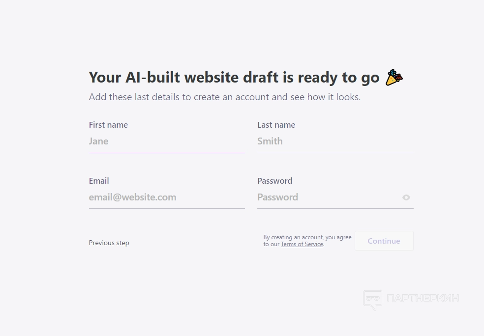 После этого откроется окно, в котором нужно указать название и описание бизнеса, для которого необходим веб-сайт. Следом откроется окно регистрации.