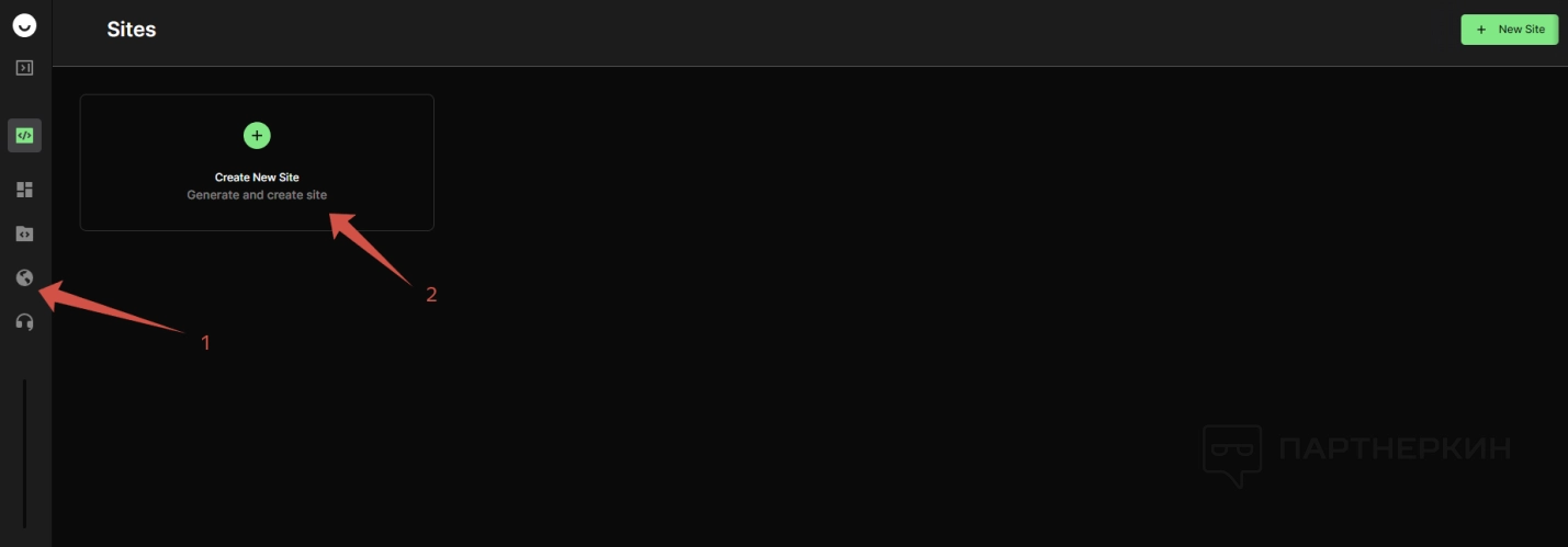 Следующим идет раздел, позволяющий добавлять в аккаунт свои сайты, которые в дальнейшем можно будет дополнять разным ПО, созданным с помощью