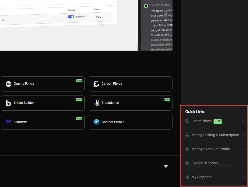 - В CodeWP доступно более 100 готовых шаблонов и библиотек, которые можно использовать для быстрого старта проектов. Это особенно полезно для типовых задач и ускорения процесса разработки.