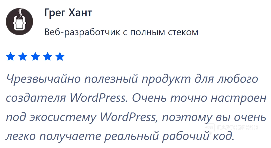 Один из главных плюсов, согласно отзыву одного из вебмастеров, очень точная настройка под экосистему WordPress. Это дает возможность генерировать и внедрять полностью работоспособный код в свой сайт, не имея особого опыта в программировании.