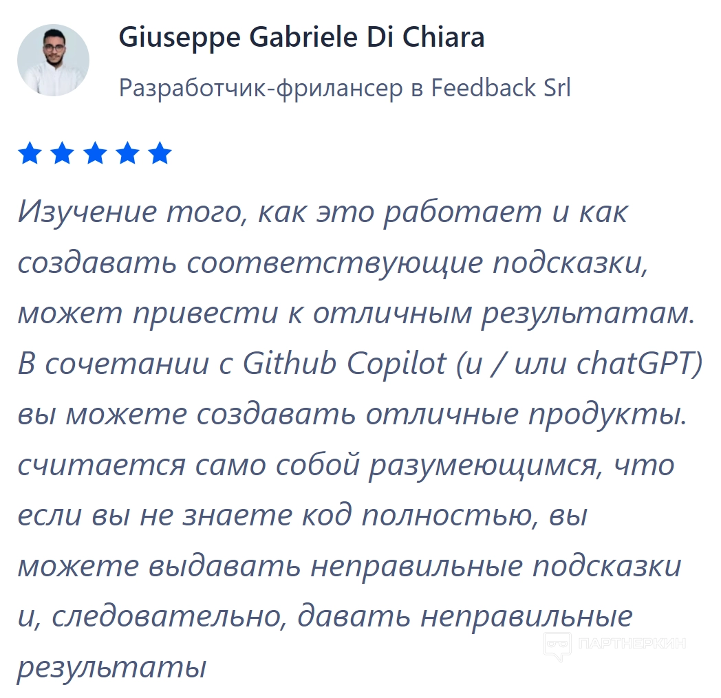 Еще пользователи отмечают, что сервис выдает полезные подсказки, которые помогают создавать код в тех случаях, когда не знаешь, как создавать правильно. Если у программиста возникают проблемы во время генерации, достаточно запустить чат и задать уточняющий вопрос. Система может выдать совет или предложить уже рабочий код.
