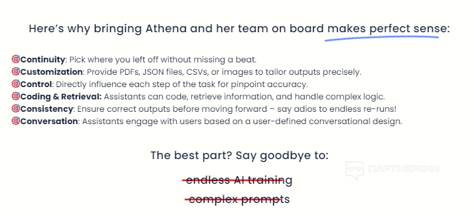 AI-Ассистент Athena обучается, исследует и пишет контент, соответствующий потребностям аудитории. Сервис использует искусственный интеллект для автоматической генерации контента, основываясь на данных, собранных о целевой аудитории.