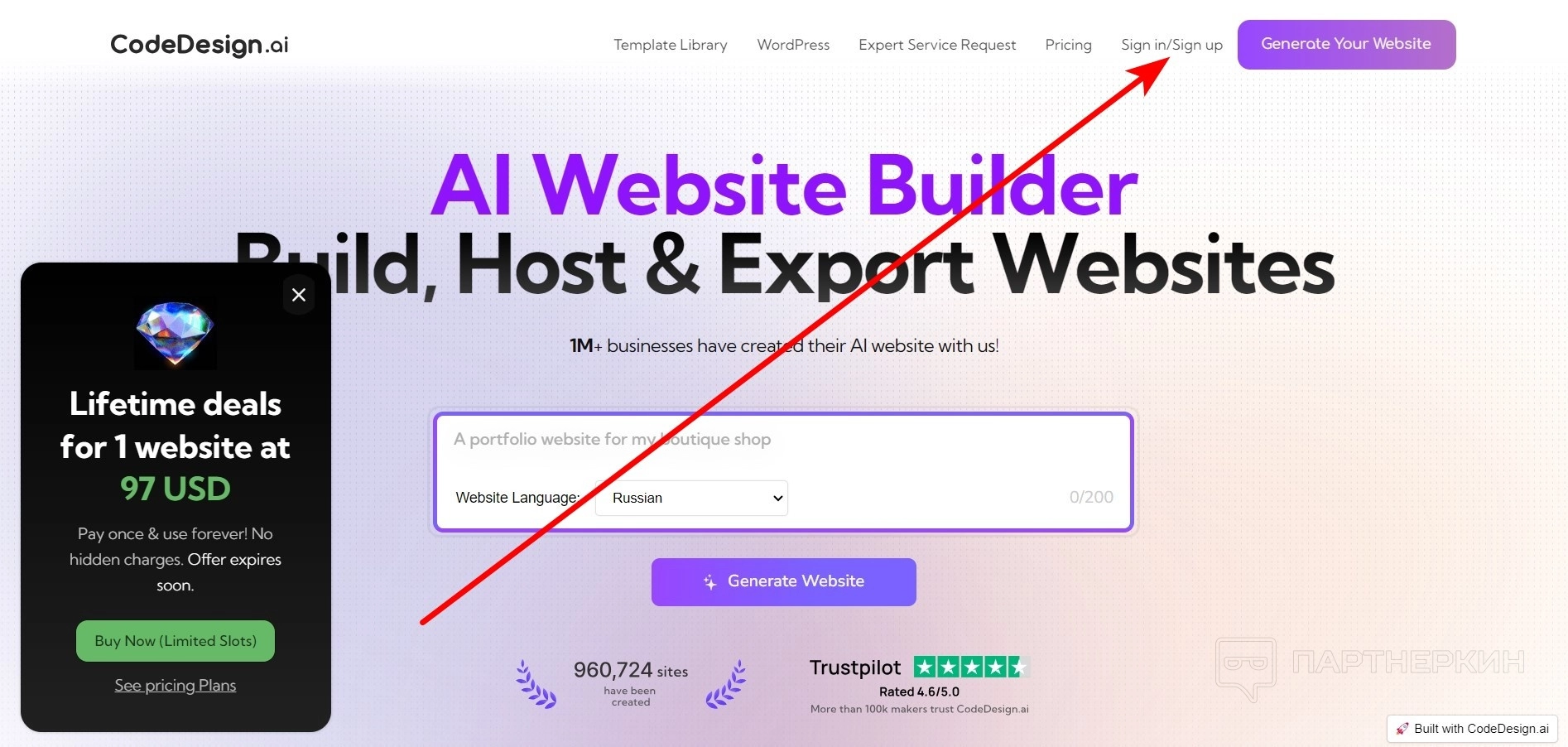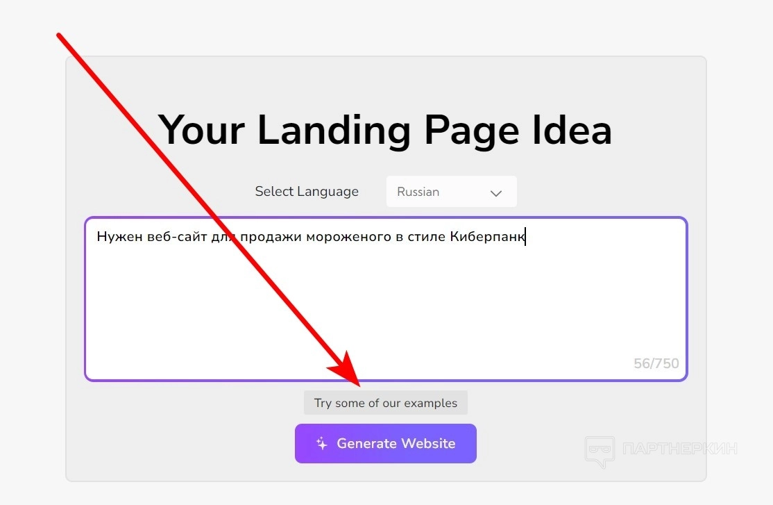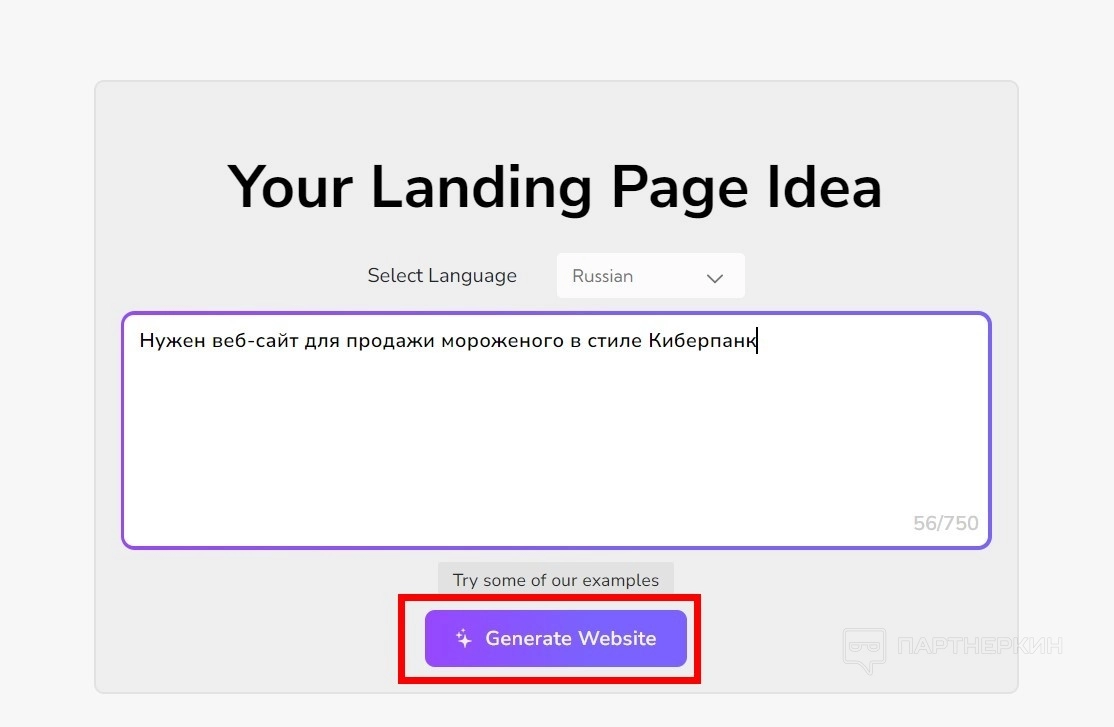 На главной странице есть окно для генерации веб-страниц. Однако при запросе система все равно требует пройти процедуру регистрации. При этом процесс создания учетной записи занимает 5-10 минут.