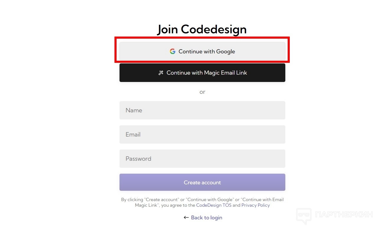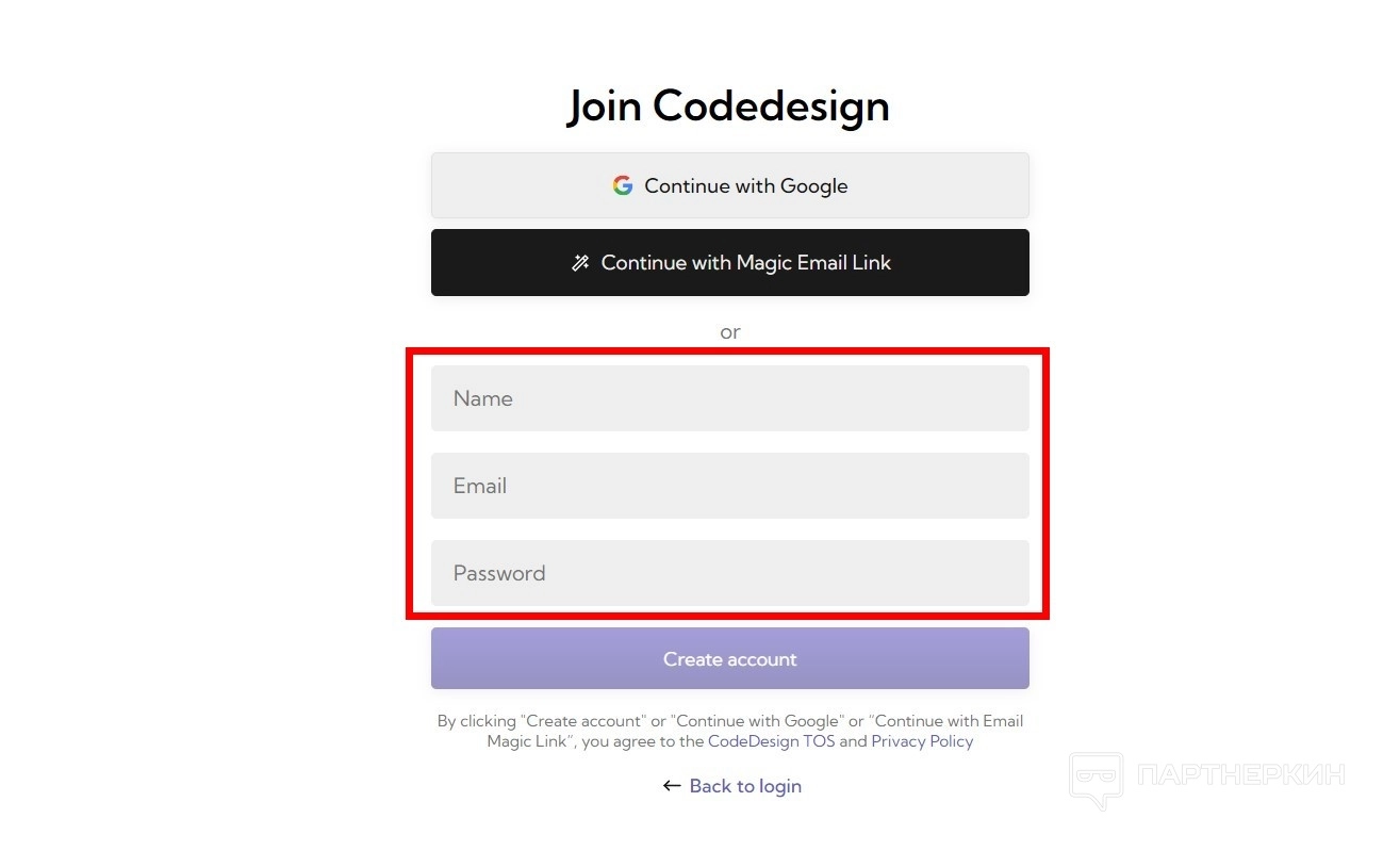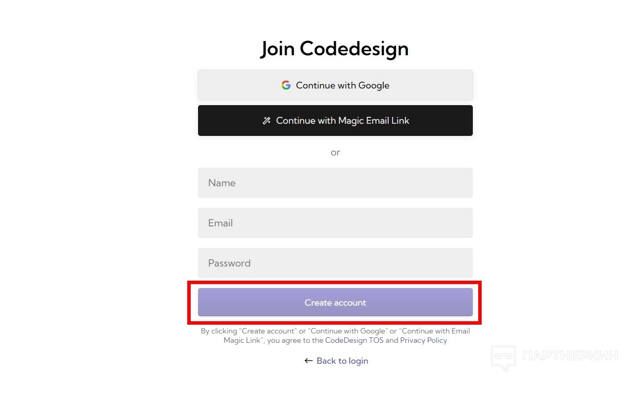 - Заполните форму: укажите ваше имя, email, придумайте пароль.