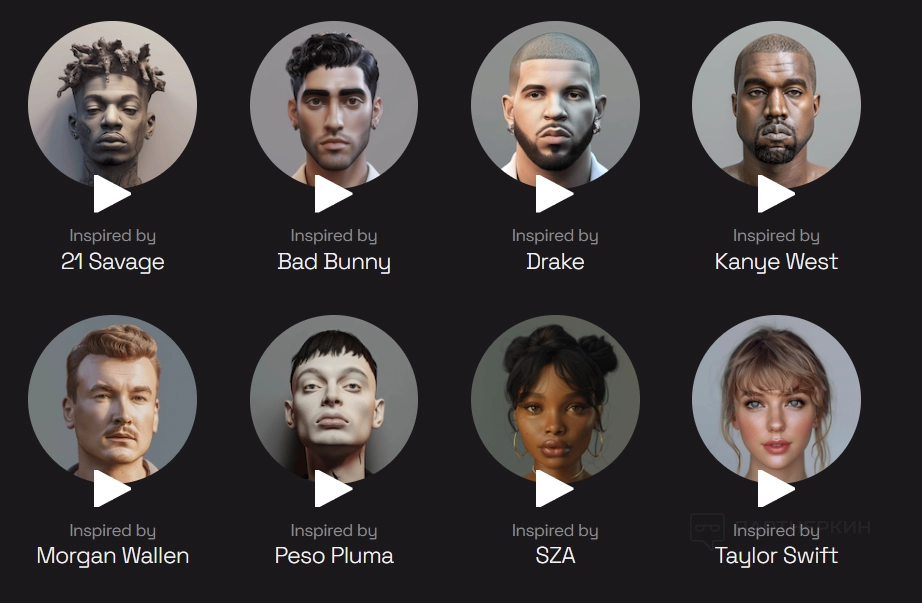 У пользователей есть возможность изменить свой голос на голос Drake, Bad Bunny, Kanye West, Morgan Wallen, Taylor Swift и других знаменитостей. Полный список можно посмотреть на скриншотах: