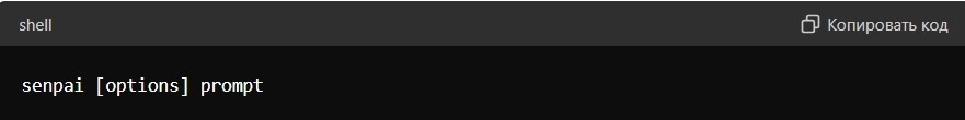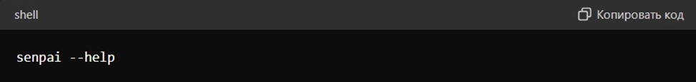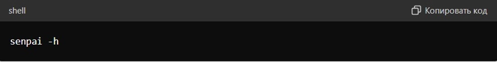 Для получения дополнительной информации о доступных командах и способах их использования, можно ввести senpai -h