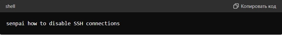Для отправки вопросов используют следующую команду: senpai how to disable SSH connections .