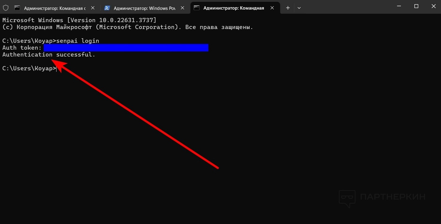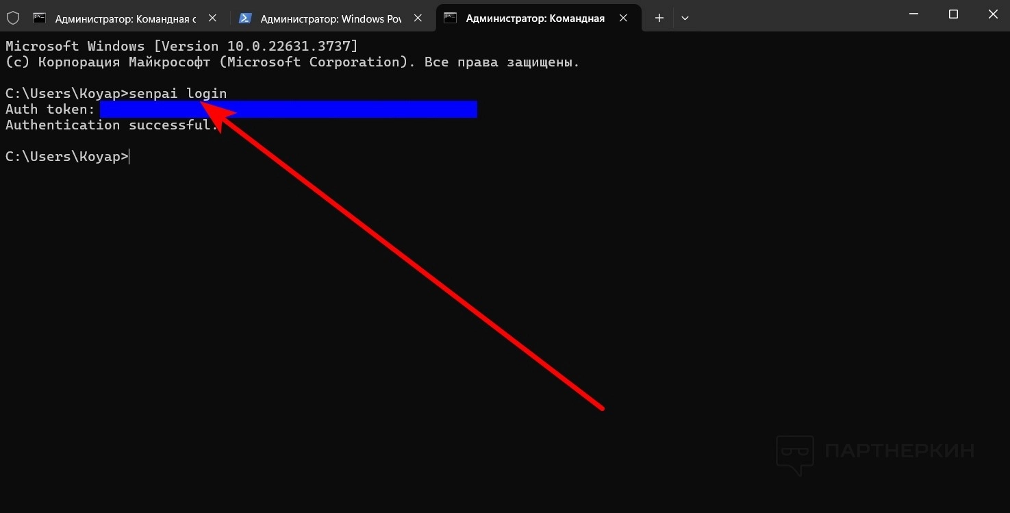 - Откройте командную строку. У каждой операционной системы действия могут отличаться. Введите в строку кода senpai login .