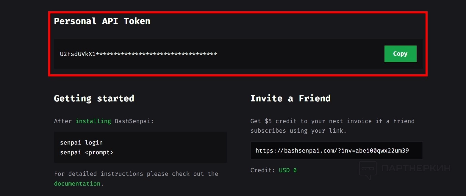 - Personal API Token. Персональный API-ключ. Нужен для активации аккаунта при входе в командную строку.