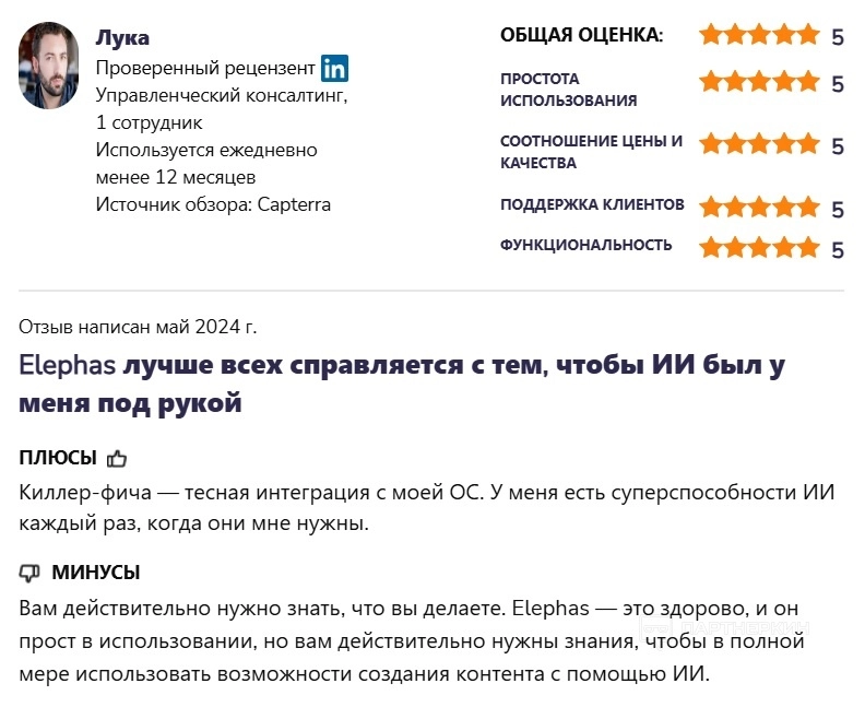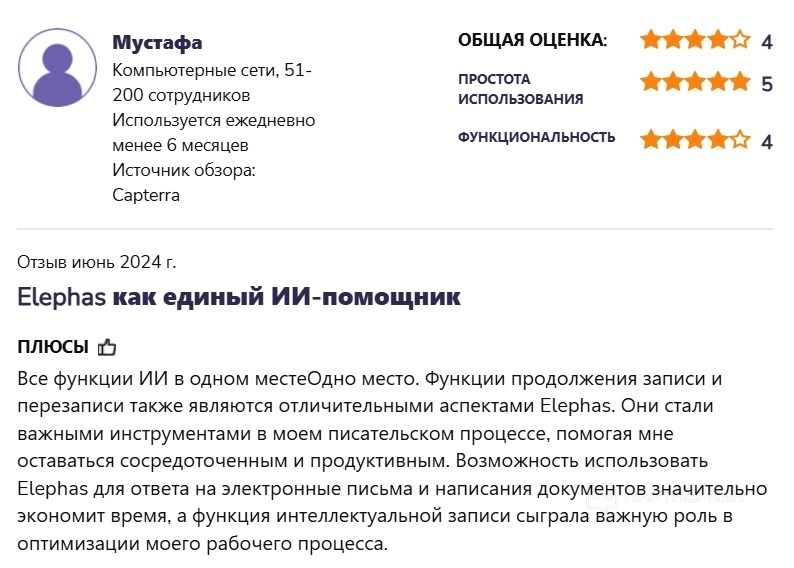 - Переписывание и переработка контента . Elephas позволяет переписывать текст в различных стилях, например, для деловой переписки или социальных сетей.