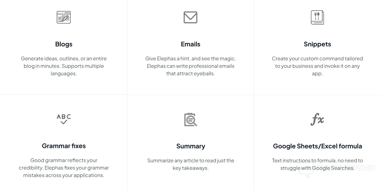 - Мощные шаблоны и команды . Elephas предоставляет пользователям доступ к обширной коллекции оптимизированных шаблонов и команд, которые можно использовать для ускорения создания контента. Шаблоны и команды можно настроить для автоматизации часто повторяющихся задач, например написание отчетов или создания маркетинговых материалов.