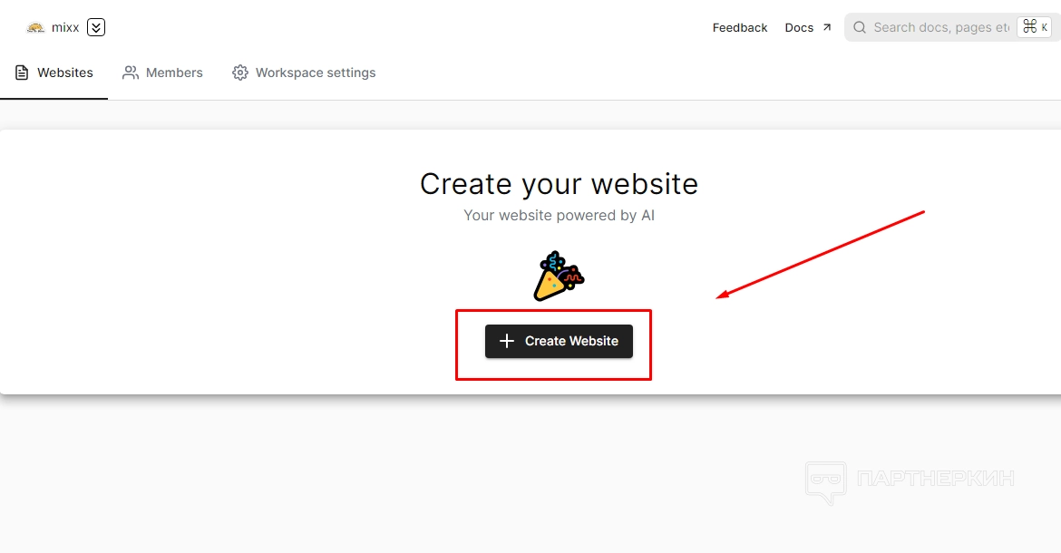 После добавления рабочего пространства появится кнопка “Создать веб-сайт”.