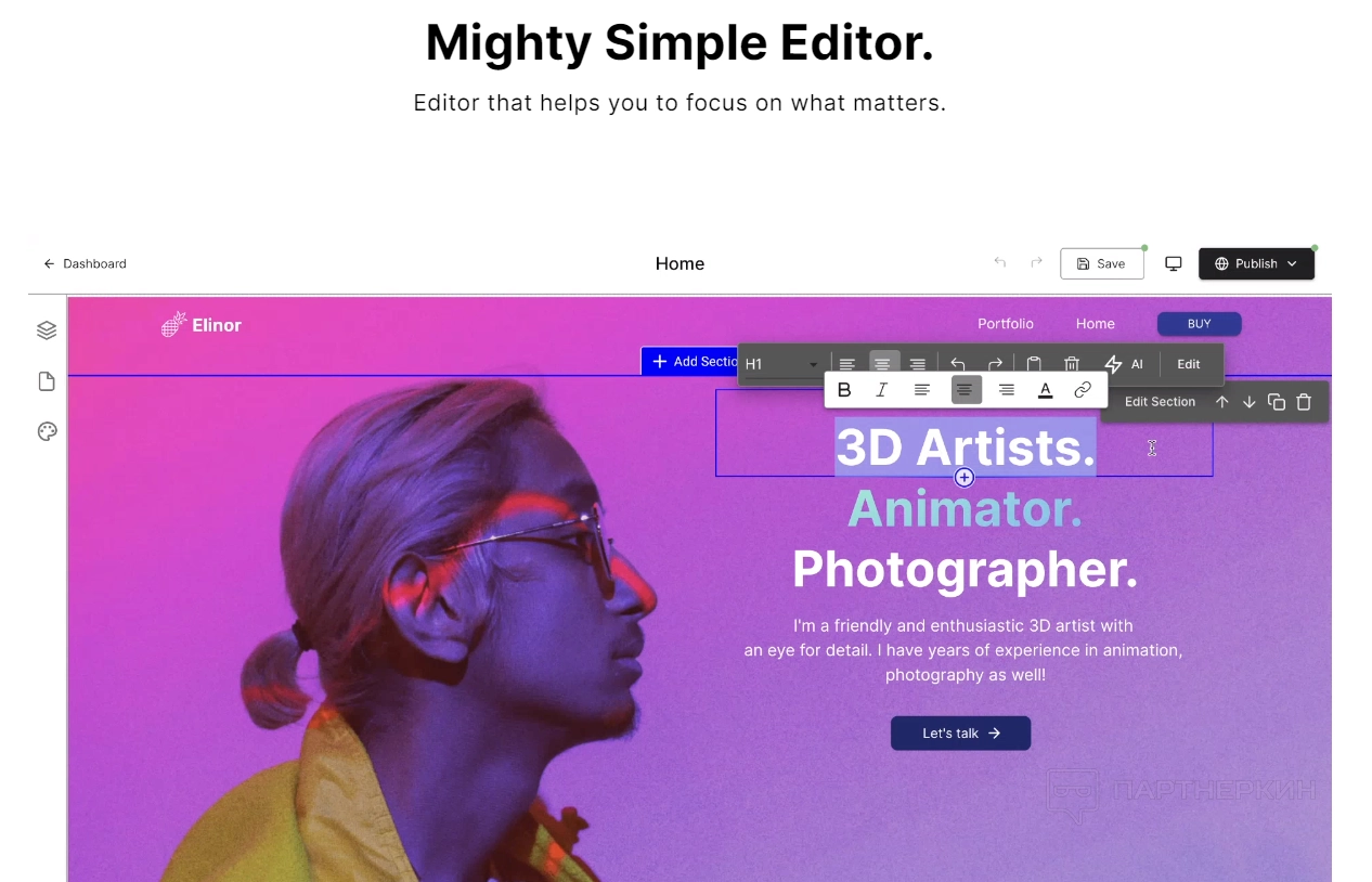 Инструмент позволяет легко редактировать дизайн и макет сайта для создания уникального и профессионального сайта. ИИ-дизайнер помогает настраивать внешний вид страниц, не требуя от пользователей знания кода.