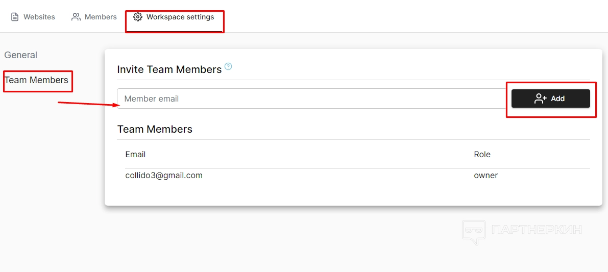 Удобно, что для совместной работы над созданием сайта можно добавить других участников. Для этого в форму приглашения необходимо вписать адрес электронной почты человека, которого нужно добавить в команду.