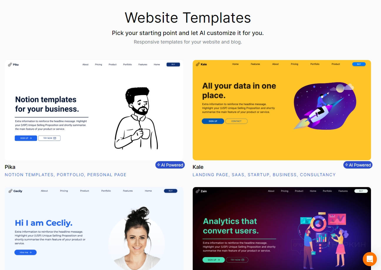На сайте доступно более 100 шаблонов. Они охватывают различные отрасли и типы сайтов. Пользователи могут выбрать оптимальный вариант для конкретных нужд и быстро адаптировать его под свои требования.