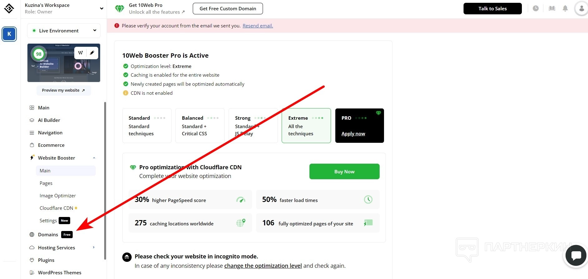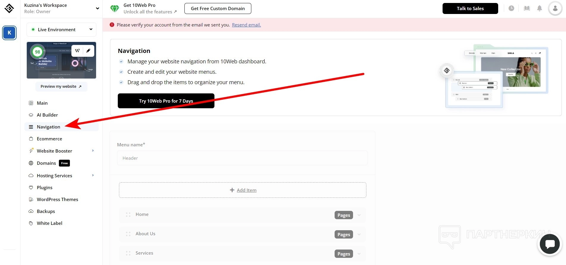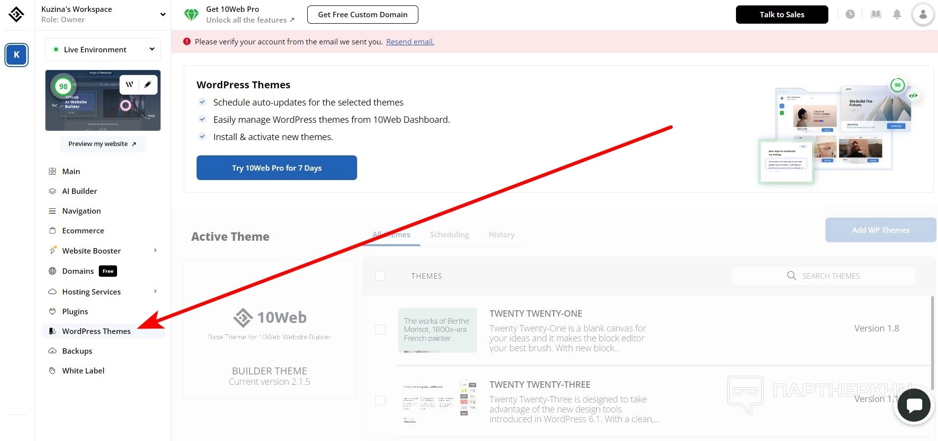 - Workspace . Рабочая область с доступом к проектам. Здесь отображаются все сгенерированные и перемещенные сайты.