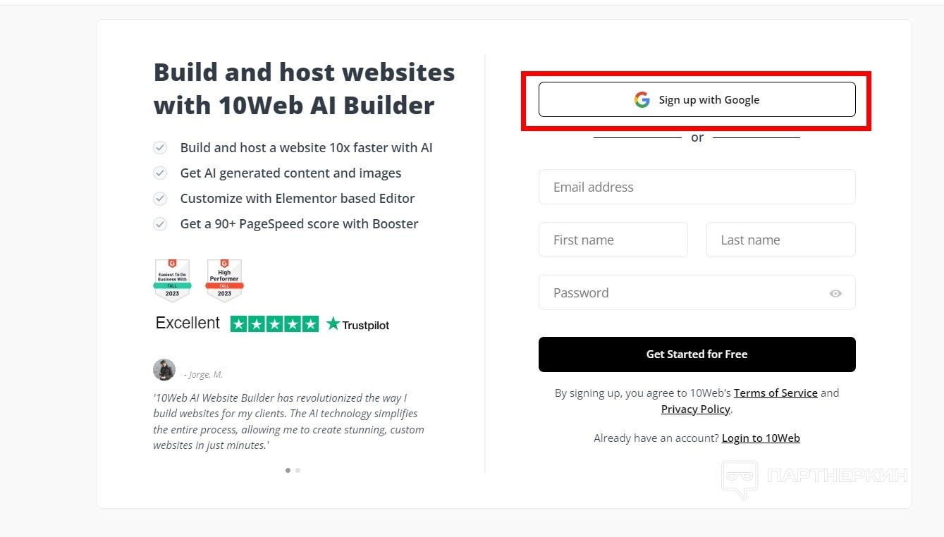 Также можно зарегистрировать аккаунт с помощью Google . У вас должна быть готовая учетная запись на этом сервисе. Согласитесь с обработкой данных. Дальше платформа зарегистрирует аккаунт в автоматическом режиме.
