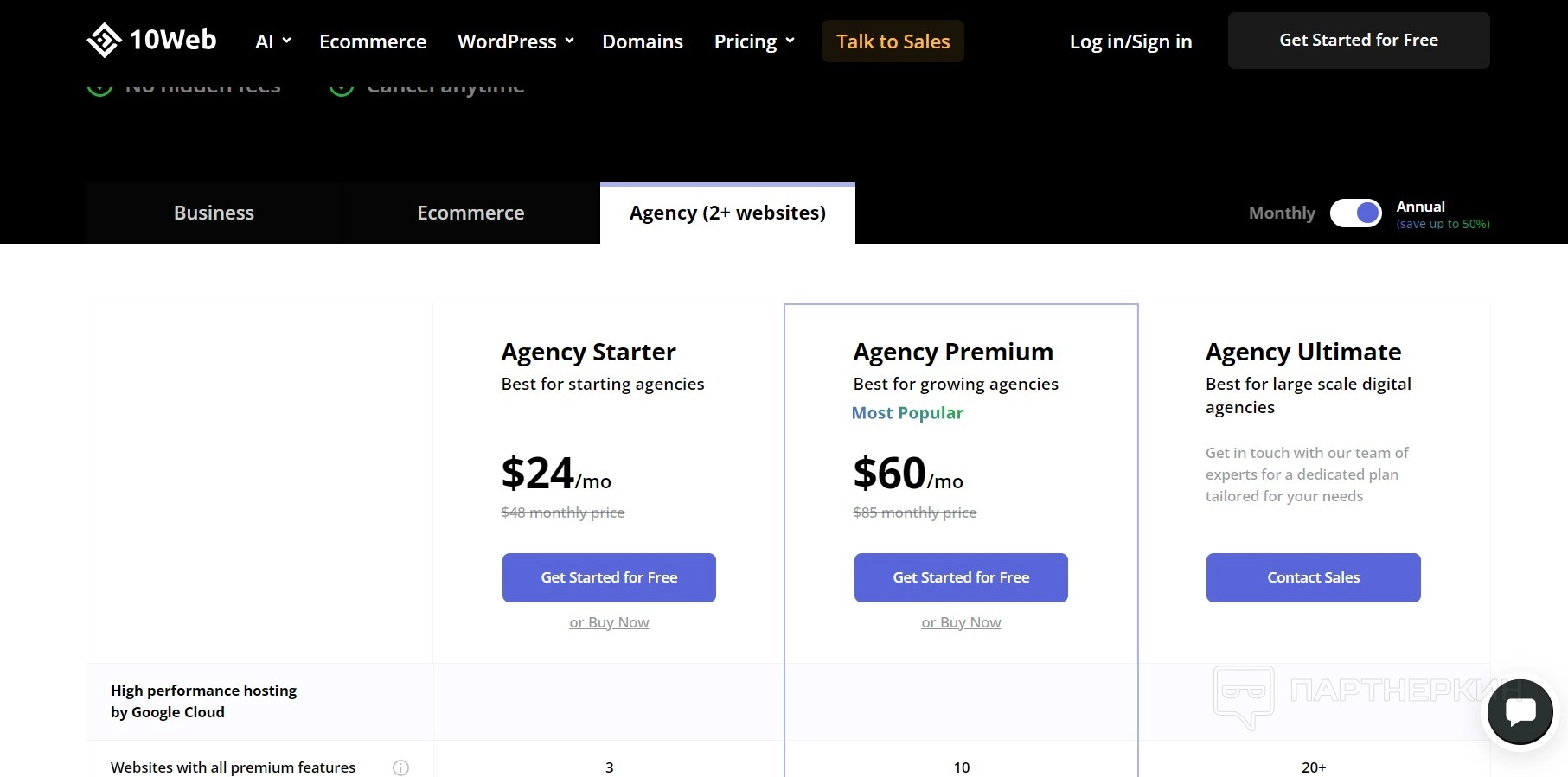 - Agency Premium. 60 USD. Для среднего бизнеса.