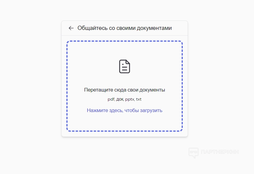 На странице рабочей области есть несколько функций. Первая из них – работа с документами (форматы: pdf, doc, pptx, txt).