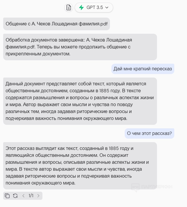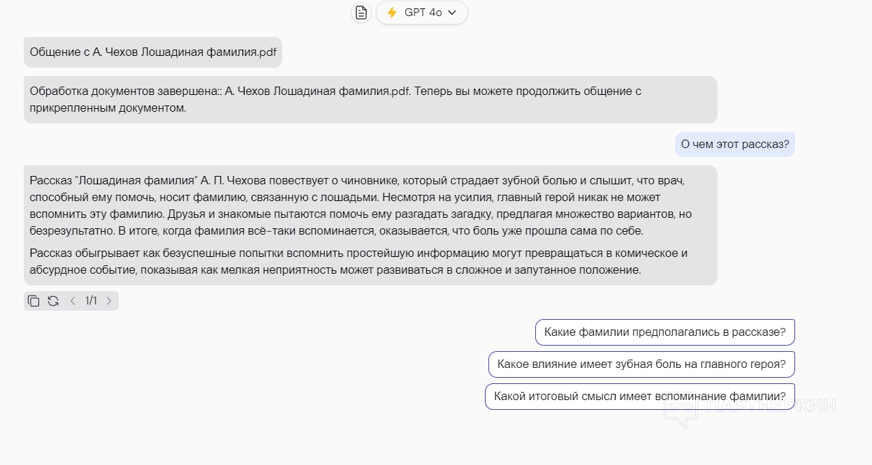 Для теста мы загрузили рассказ А.П. Чехова «Лошадиная фамилия». Попросим