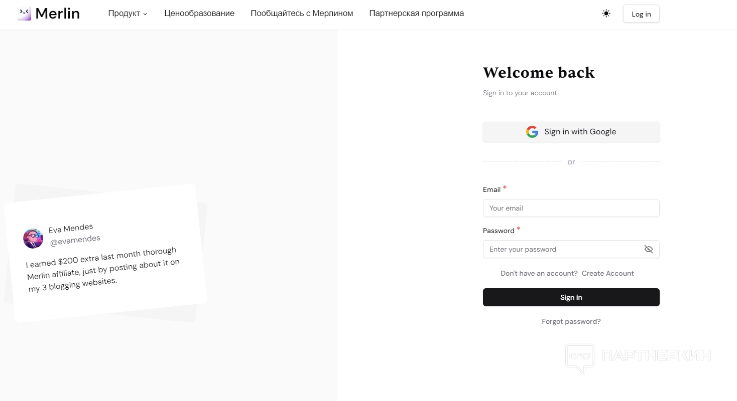 Проще всего войти через аккаунт Google. Если этот способ не подходит, тогда откройте раздел «Create account» и введите имя, адрес электронной почты, пароль.
