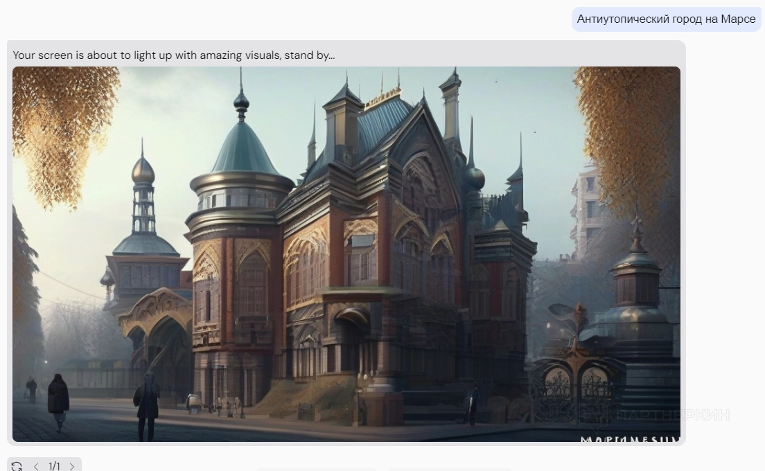 Для теста введем предложенный промт: «Антиутопический город на Марсе».