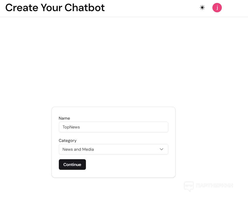 Откроется страница, где нужно придумать боту имя и выбрать категорию (например, News and Media).