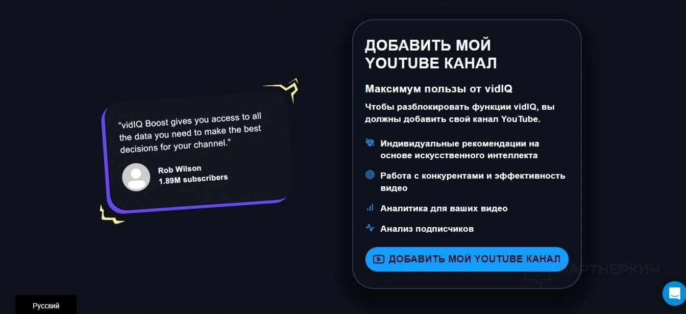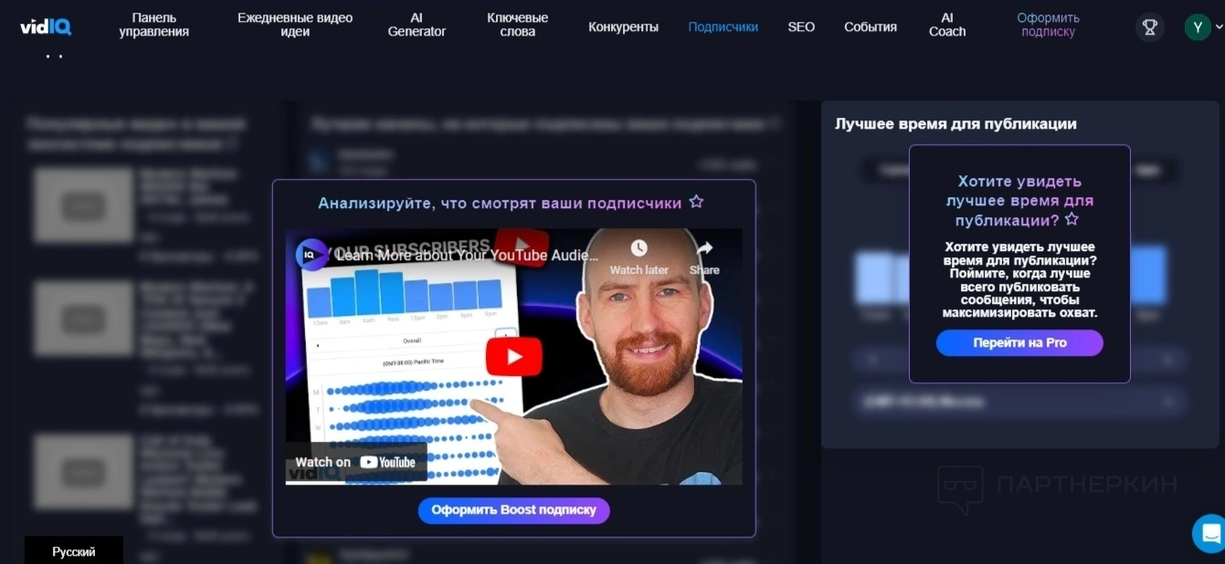 - анализ подписчиков VidIQ — сбор данных о предпочтениях подписчиков при просмотре канала;