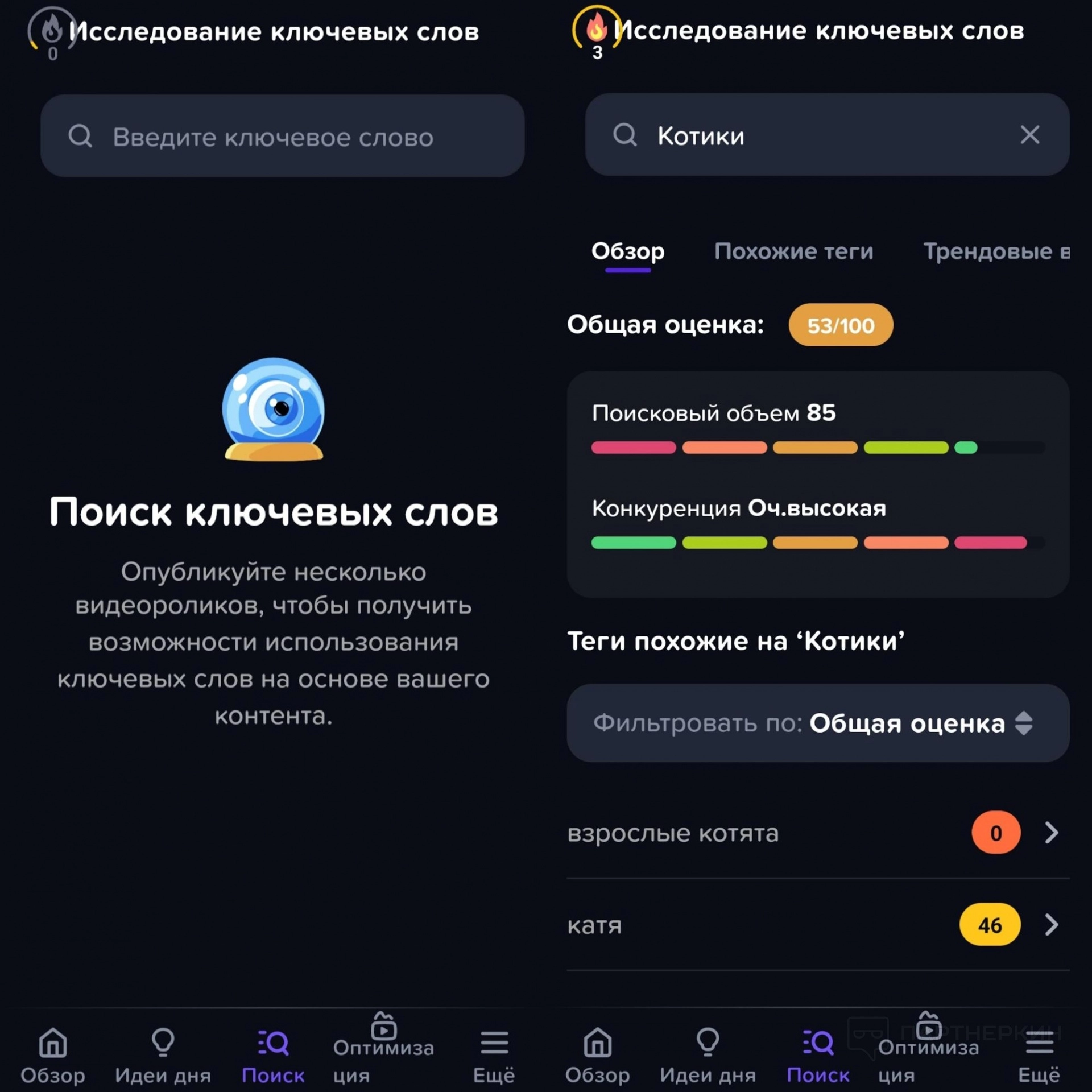 Третья вкладка — поиск ключевых слов для оптимизации своих видео и их вывода в топы. Чтобы подобрать ключевые слова на основе собственного опубликованного контента, необходимо иметь несколько загруженных видео на канале. При этом,