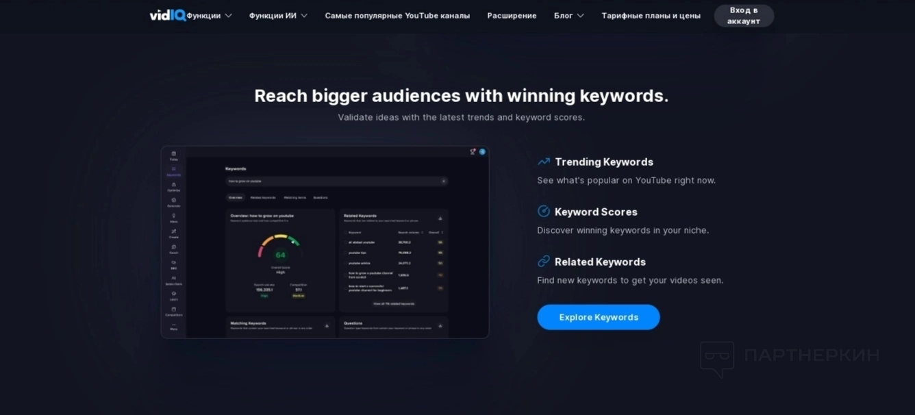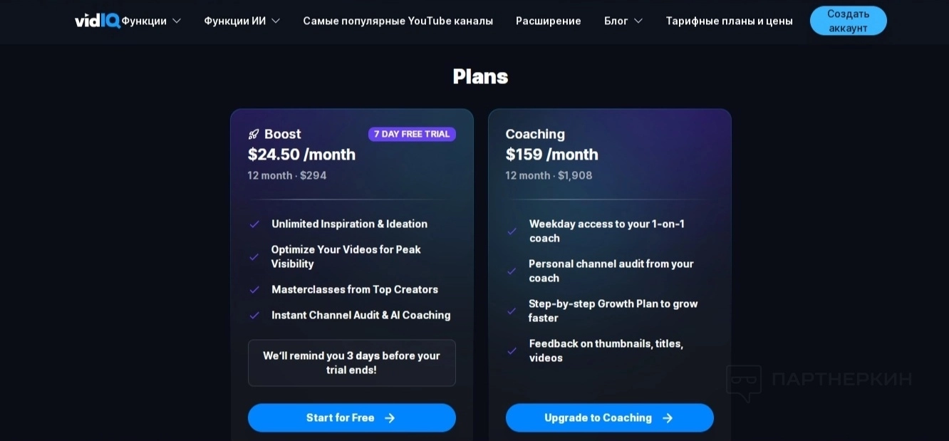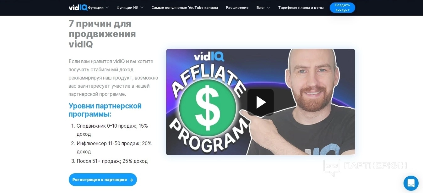 В качестве дополнительных бонусов VidIQ подготовил лояльную ценовую политику, реферальную программу, мощный центр поддержки, блог и академию для получения знаний по монетизации, продвижению и оптимизации своих каналов.