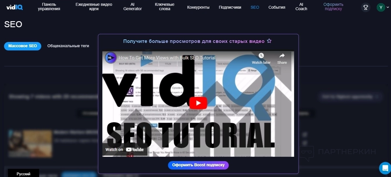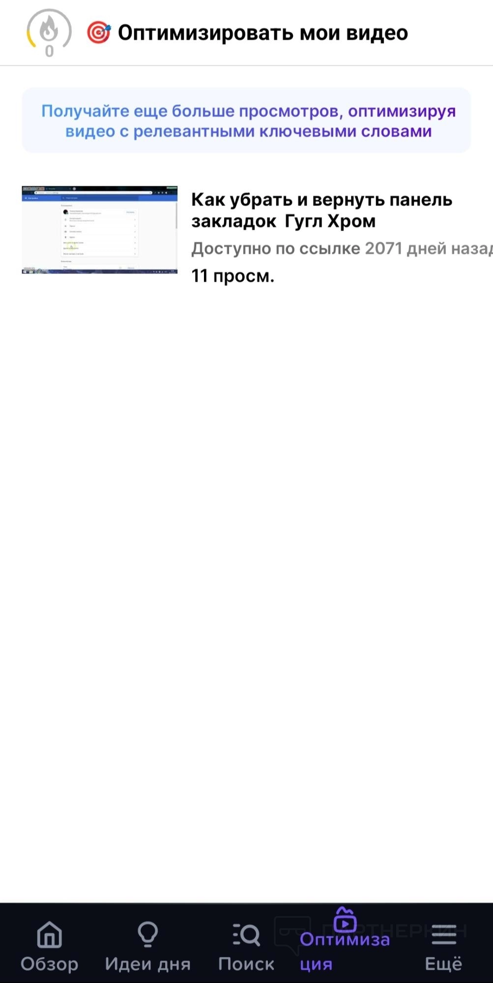 SEO . Раздел для оптимизации видео. Благодаря ему можно получить больше просмотров как на уже опубликованные видео, так и на планируемые.