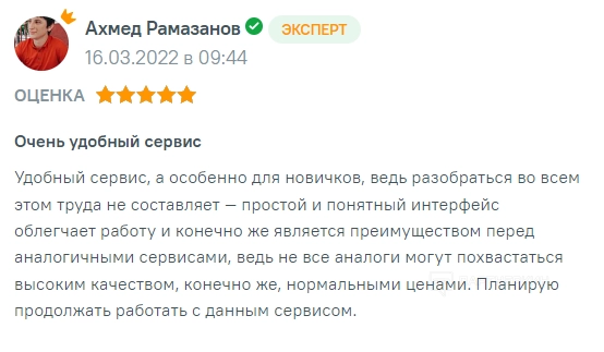 Пользователь Ахмед отмечает удобство сервиса для новичков, лояльную ценовую политику и конечный результат в сравнении с другими аналогами: