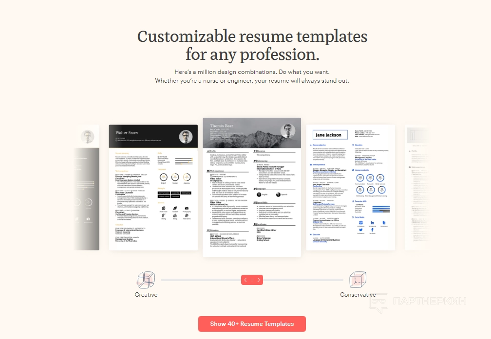 - Более 40 профессиональных шаблонов резюме;