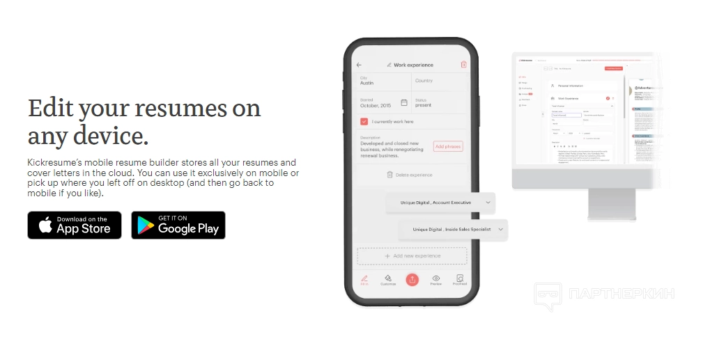 - Мобильное приложение Kickresume;