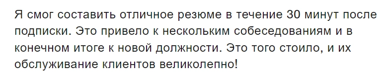 Многие отмечают скорость составления резюме и высокое качество команды поддержки, которая помогает решить любые вопросы, связанные с использованием платформы: