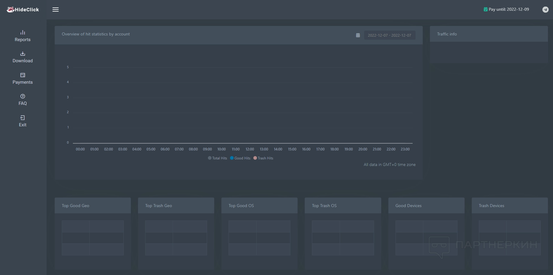 Главная страница личного кабинета содержит информацию о трафике. На новом аккаунте статистика отсутствует.