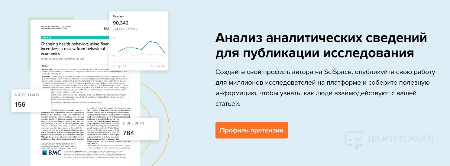 Платформа поддерживает интеграцию с издательствами и научными журналами, что упрощает процесс подачи статьи на рассмотрение. Можно отправлять свои статьи непосредственно через