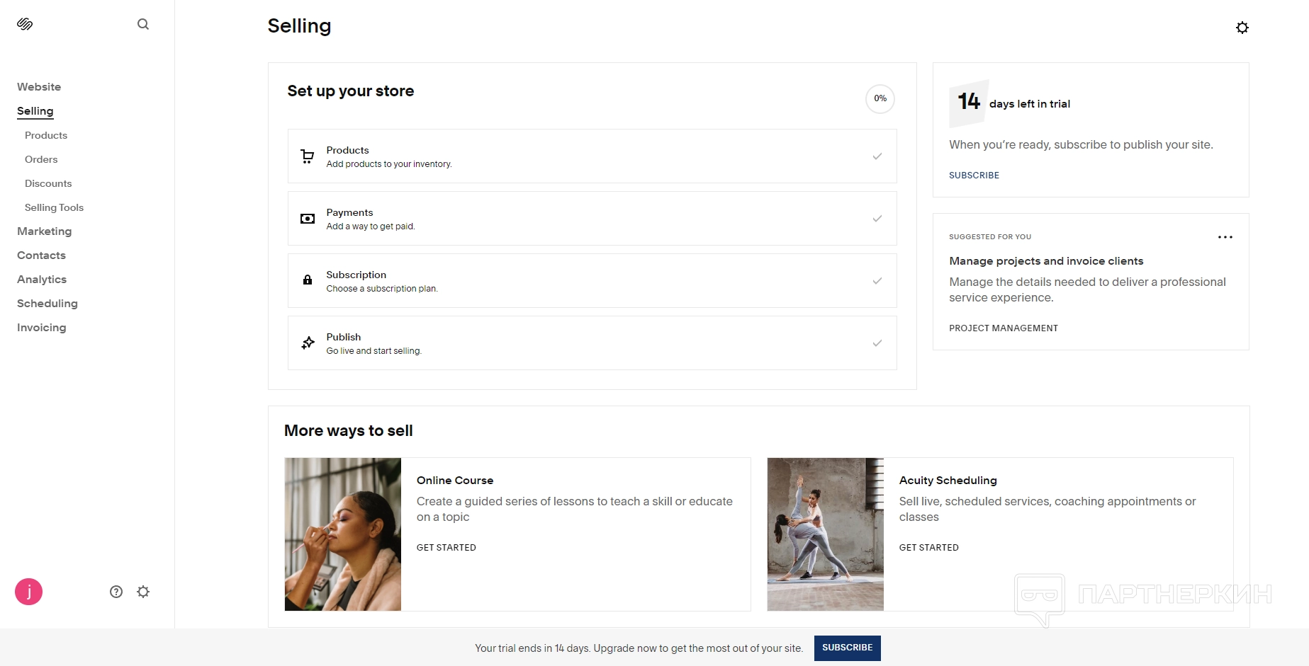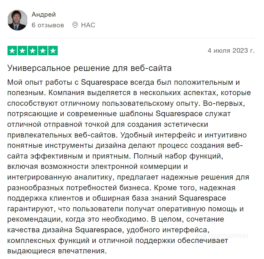 Продажа контента (онлайн-курсы, блоги, видео). Squarespace взимает комиссию в размере 9% от этих продаж |