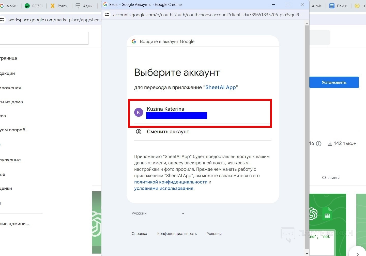 - Войдите в свой аккаунт Google и согласитесь на обработку данных.