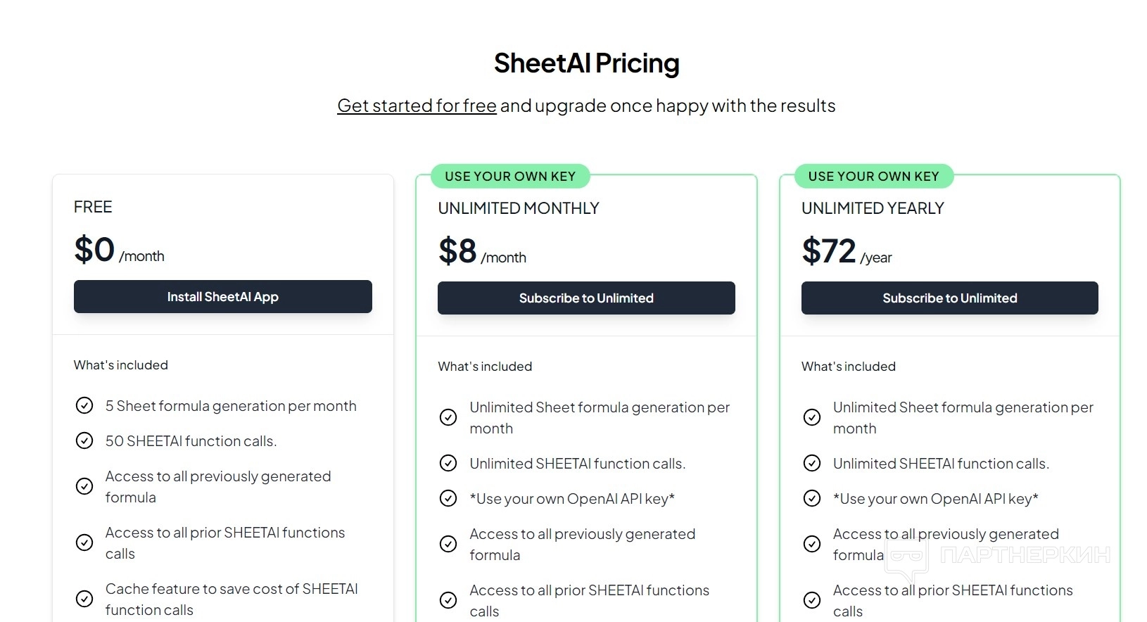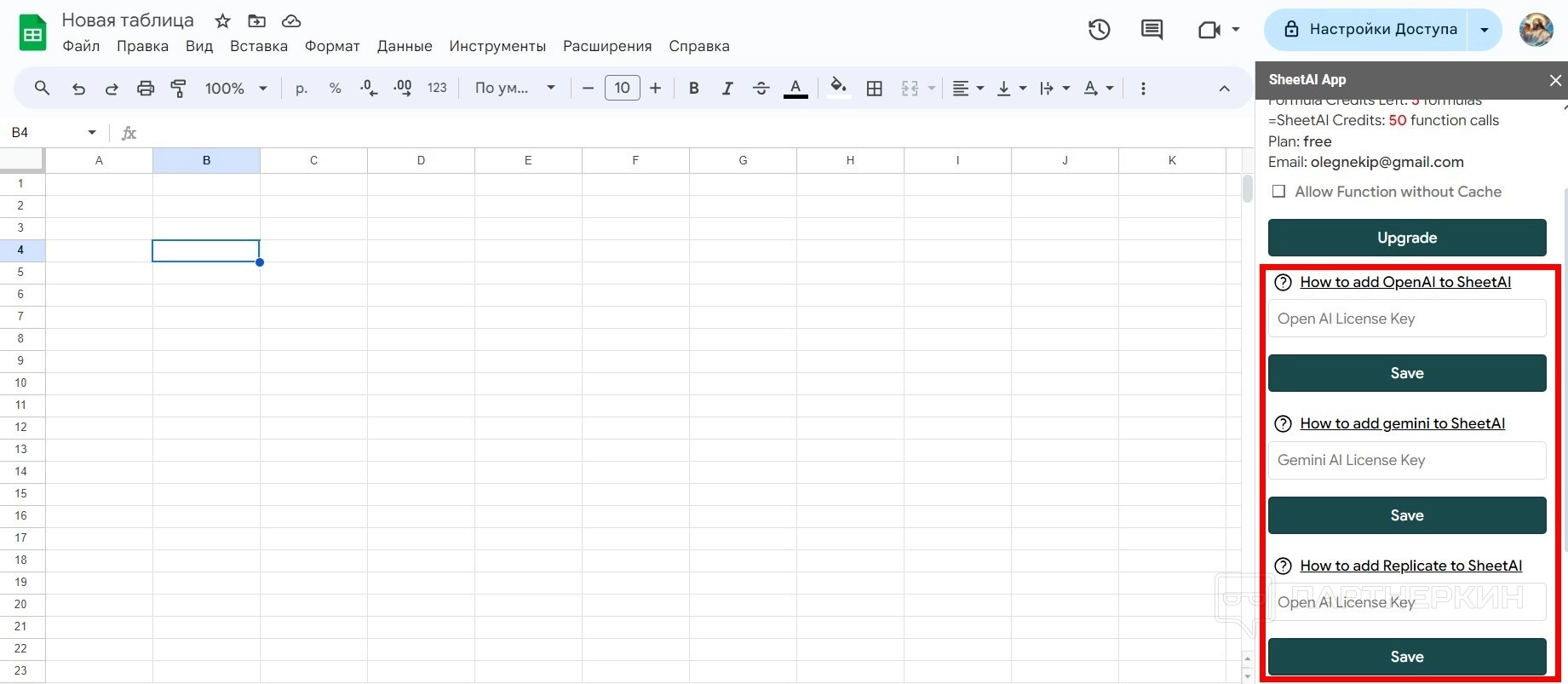 Использовать продукт можно без регистрации. При этом пользователю будет доступен бесплатный тарифный план. Приложение интегрируется в систему Google Sheet и работает оттуда напрямую.