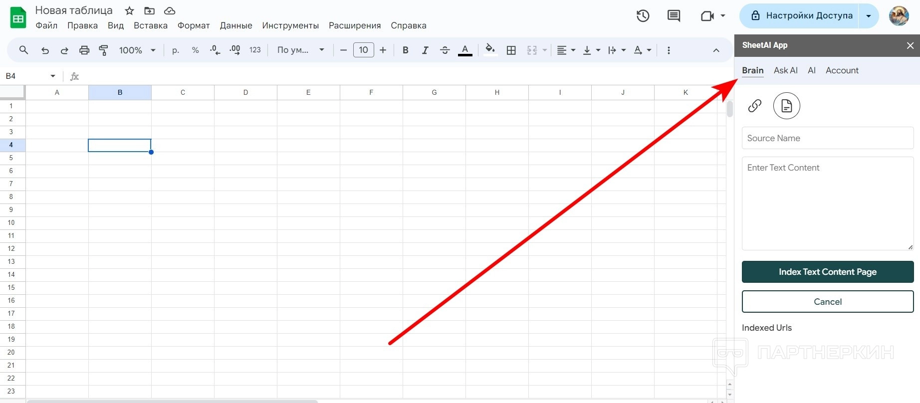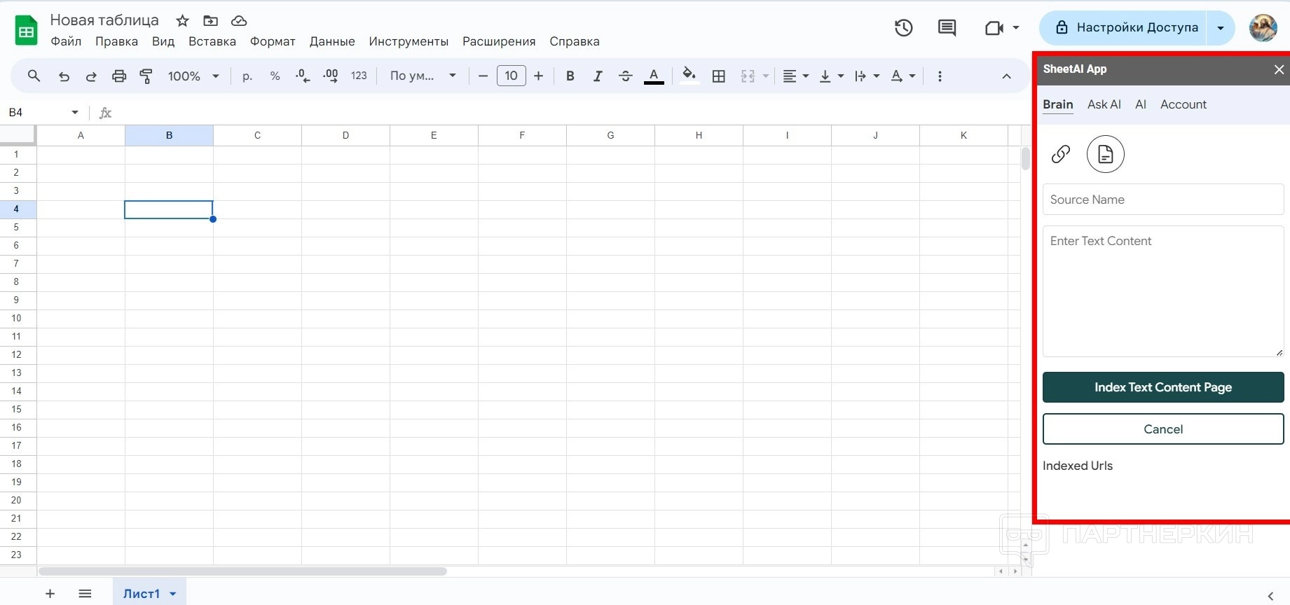 - Перезагрузите браузер. Новый элемент SheetAI App должен появиться во вкладке Extensions (Расширения).