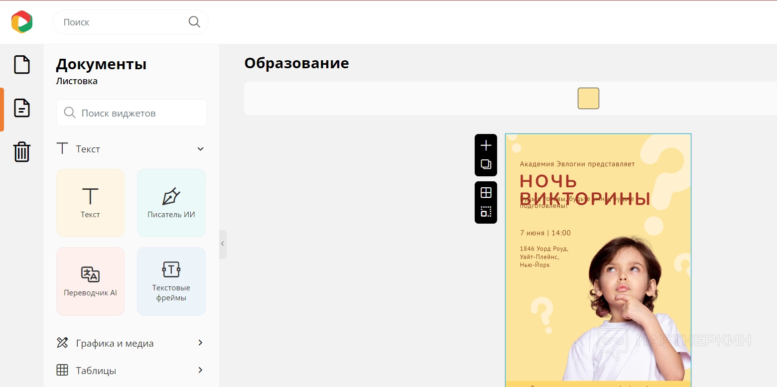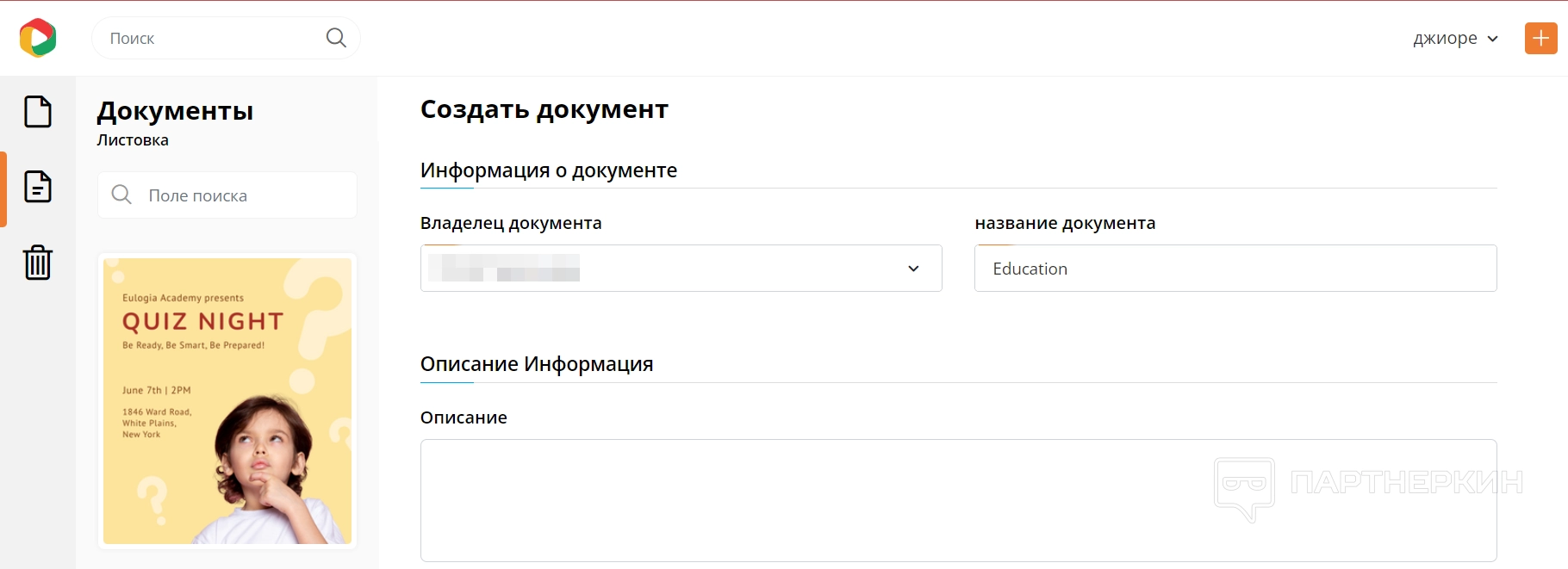 - Возможность создания неограниченного количества документов.